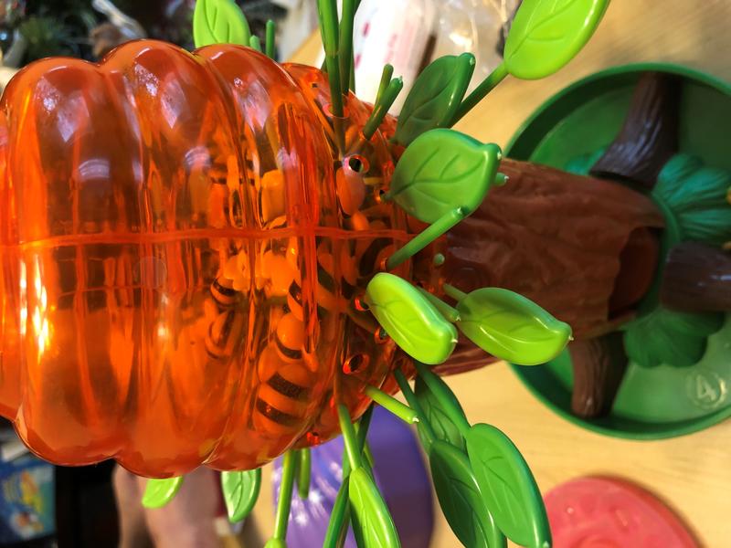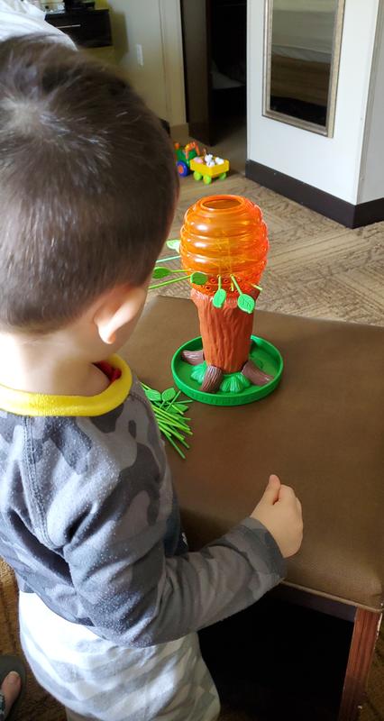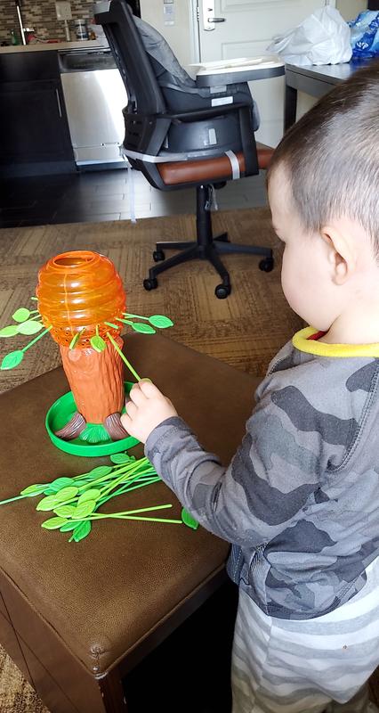 As a kid I had the game kerplunk and I knew my kids would enjoy it as much as I did. I love the bee theme to this one. It such a cute idea. Put the leaves it takes a little while but it's easy that even my 3 year old can put them in.