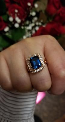 Beautiful statement ring! Got it as a gift and am very pleased. Looks better in person on a hand than in pictures. The blue with the rose gold is also perfect.