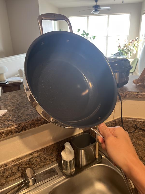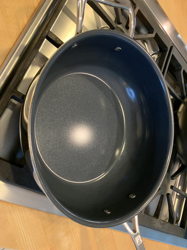 Smart looking with a high capacity and excellent heat conduction. Browns well and clean up is easy. Love that it’s dishwasher safe.